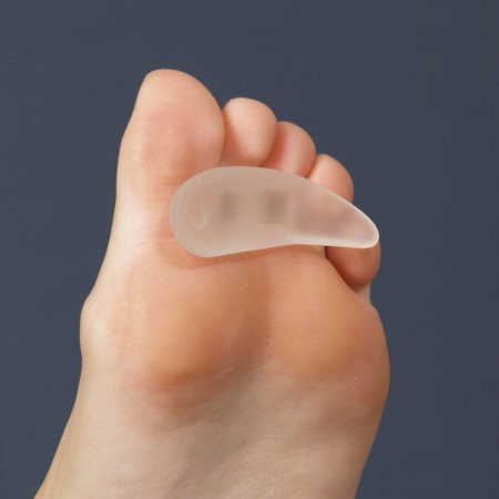 Перед использованием подушечку необходимо обработать тальком. Изделие вкладывают под пальцы, кольцо надевают на второй палец.